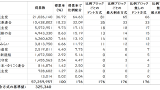 日記 やっぱり比例代表制でのドント方式は大政党が得してた